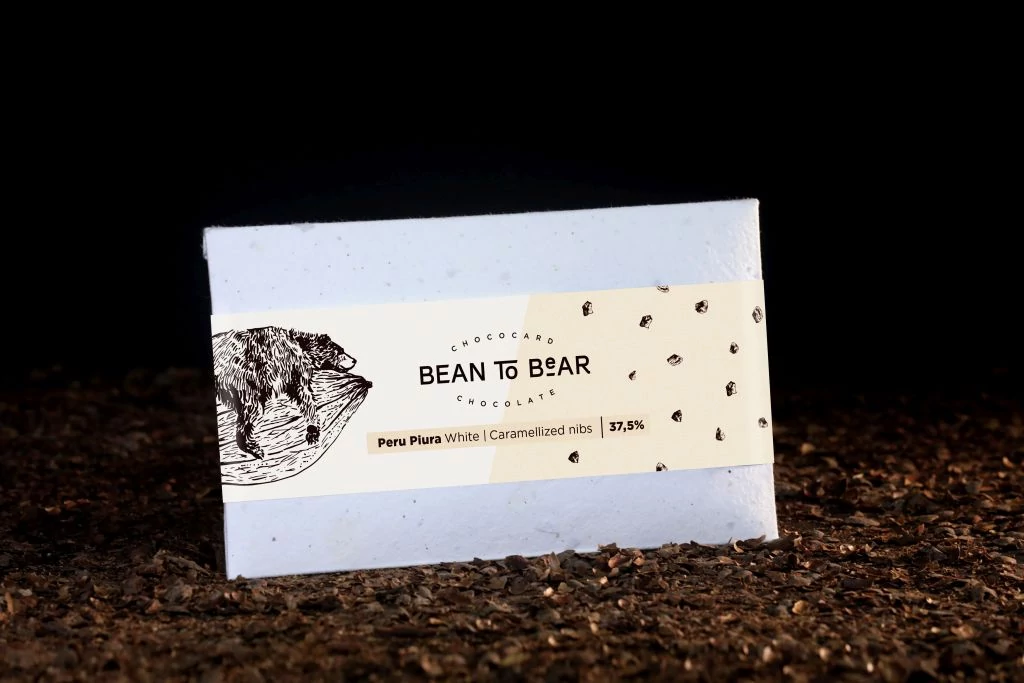 Bean-to-Bear fehér csokoládé karamellizált kakaóbab törettel