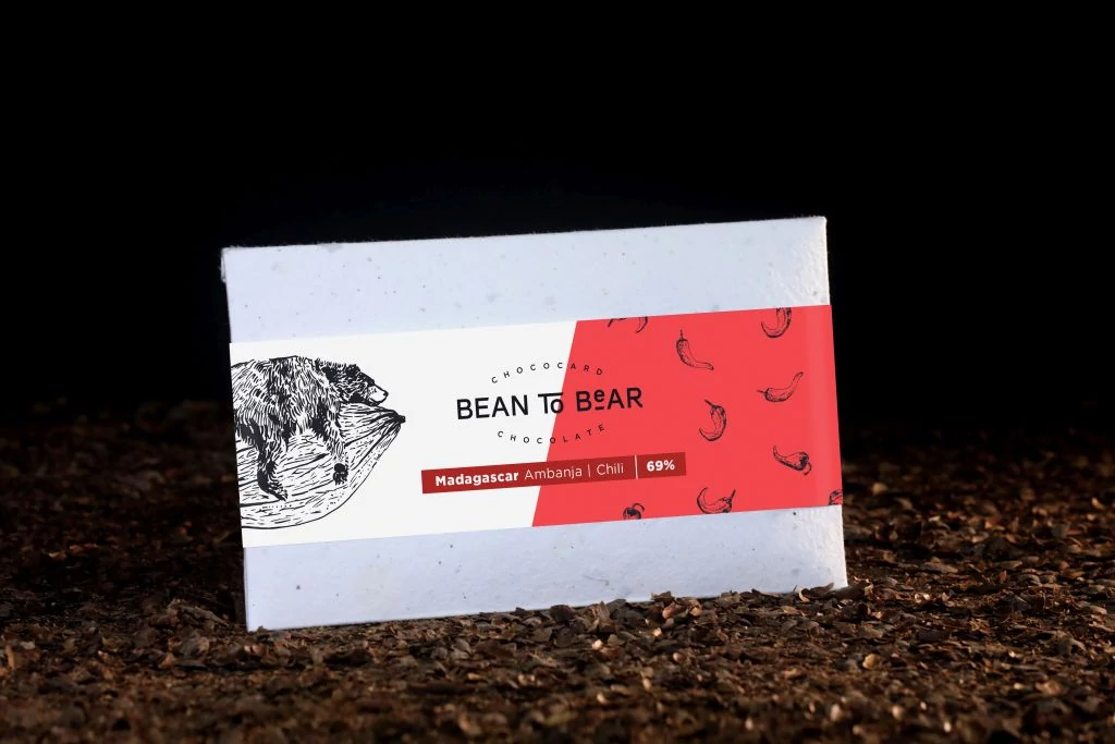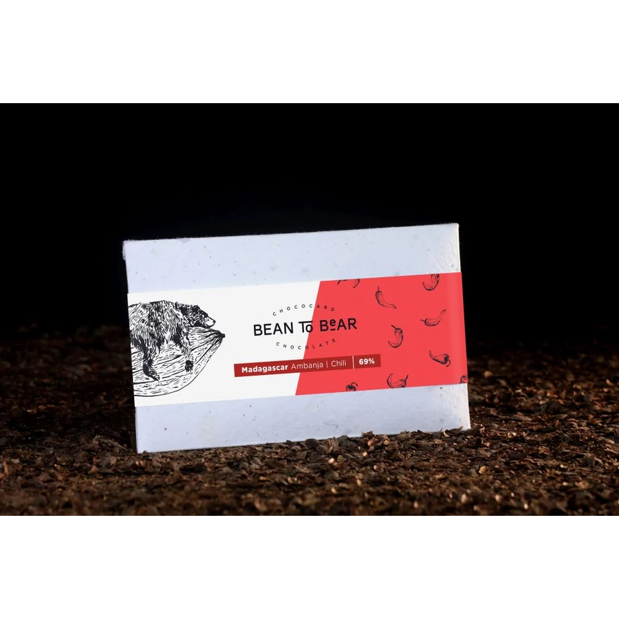 Bean-to-Bear étcsokoládé chilivel ízesítve, madagaszkári kakaóbabból.