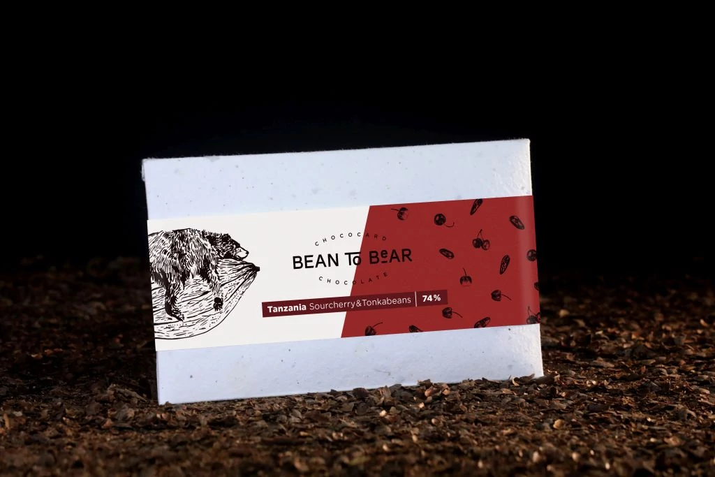 Bean-to-Bear meggyes-tonkababos étcsokoládé, tanzán kakaóbabból.
