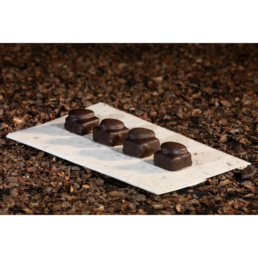 Avolai mandulából készített ropogós praliné, étcsokoládé burokban, pirított mandulával díszítve. (6db/csomag)